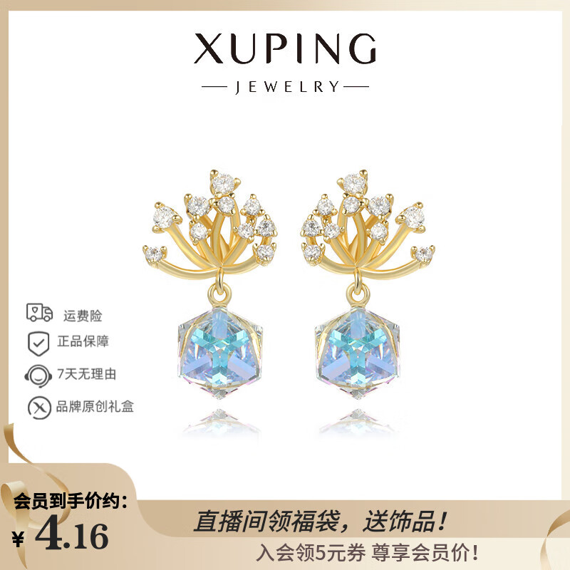 包邮 XUPING旭平首饰仿水晶系列合金时尚个性简约百搭方糖耳钉送礼饰品X001168307 耳钉【角度不同显示颜色不同】